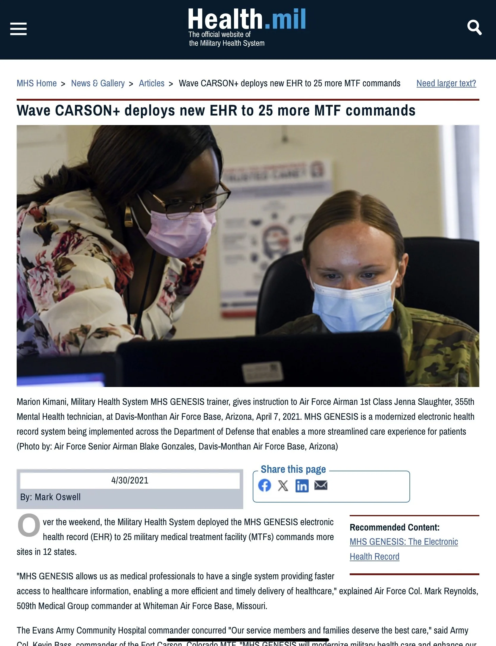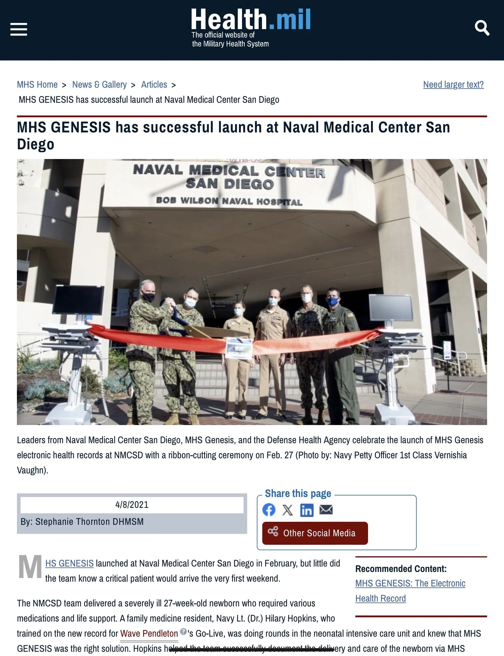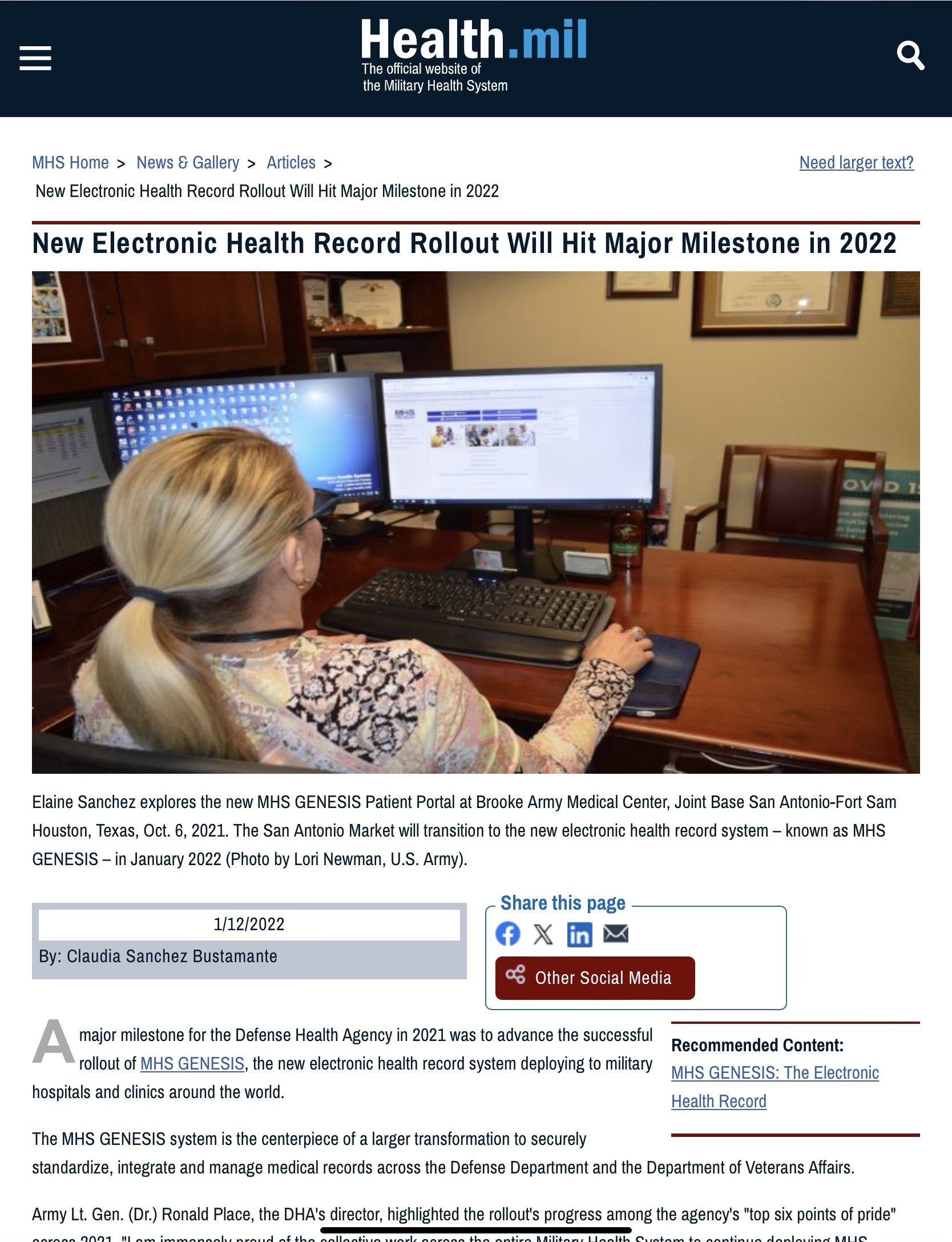 Supported the U.S. Military Health System’s national EHR rollout through digital strategy and branding.